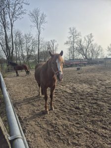 Hoi, ik ben Missy, een merrie van 13 jaar. Wat mijn ras is weet eigenlijk niemand, dat stond niet in mijn paspoort. Ik sta hier sinds 2023 en moest even wennen, maar inmiddels heb ik mijn draai gevonden.