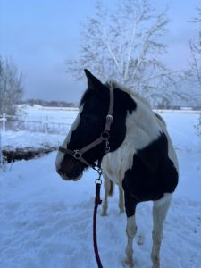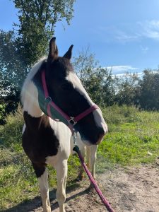 Hoi, ik ben Vlekje, officieel heet ik Irina. Ik ben een Duitse merrie van 19 jaar en sta het langst op deze manege. Vroeger was ik een echte springpony, maar dat lukt helaas niet meer. Vorig jaar ben ik geholpen aan een scheurtje in mijn pees en ik ben nog aan het herstellen.